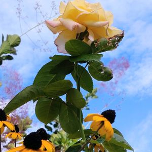 𝑔𝑜𝑜𝑑 𝑚𝑜𝑟𝑛𝑖𝑛𝑔🌿 薔薇 ピース✌ 我が家に来た 1番目のお花 ズッと一緒に 時を過ごしました ルドベキアに囲まれ スモークツリーモフモフ☆シンボルツリー 花咲 秋の空 ☀ サァー太陽が昇る 🏃♀💨💨気分⤴Up ˖ ࣪⊹˖ ࣪⊹٩( ᐛ )و頑張るぞ🐘 𓂃܀❀𓂃܀❀🐿️🍀🎶
