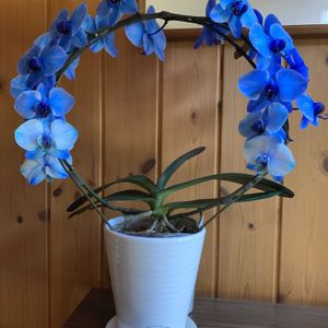 「ミディ胡蝶蘭 白」で名前合っているでしょうか? 半分くらい上の方の花が無い状態なので、セール価格(なんと1,000円)で買いました! 神奈川県 8月19日撮影