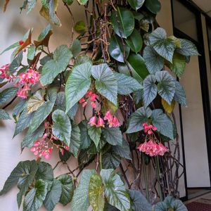クマゼミの大合唱に夏の暑さが増しますなあ〜😅💦 玄関の長寿木立ベゴニアが花盛り!! 二階テラスのベゴニアもゴムの木鉢でイキイキ元気に…挿し木から〜✌️🥰🎶 ホヤ.サクラランも満開に〜🈵 フウランも負けじと満開に〜🈵👏👏👏😃🎶⤴️⤴️