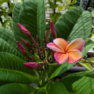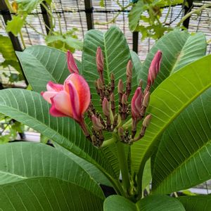 お早う御座います〜☀ 暑さも吹き飛ばすわ!! 二階テラスのプルメリアが開き始めました👏👏🥰🎶 去年処分セールで購入〜 こんなに成長し望んでいたお花が咲き始め嬉しい限りです…満開が楽しみ✨✨✨ ホヤ.サクラランも次々と咲き続けていたが終わりに近づいています レッドのサファニアとアメカンブルーの寄せ植えです 癒されてね〜🙋💞