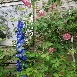 スパニッシュビューティさん、去年地植えにした後に、お名前とつるバラだということが分かりました😱😱 どうしようもないので、慌てて小さなオベリスクに誘引しましたが、オベリスクのてっぺんとそれから下の方にしかお花が咲きませんでした💦💦 ちなみにこの写真はテッペンのほうです😅 やっぱりツルを上に伸ばしてもなかなか蕾はつきづらいのでしょうかね〜😅😅