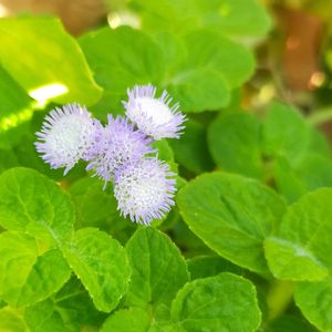 小さな薄紫 緑の葉に囲まれて 『アゲラタム』 カッコウアザミ属 キク科の1属 今日は ポカポカ陽気の午後になりました✨