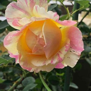 おはようございます☀ 花友さんに頂いてたバラ、 「クロード モネ」。 4月に咲いた一番花は黄色多めでしたが、 今朝、こんなに見事な絞りのお花が咲いていました🥰 まさしく、「モネ」の絵画のような😍 美しい〜🌹💓