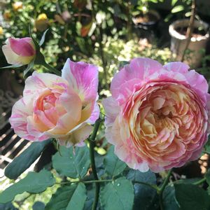 薔薇クロード・モネ 昨日に続き何度も登場🙏ペコリ(⋆ᵕᴗᵕ⋆).+* 多分これが、春の1番花の中でBESTの🌹だと思います。 これが見れてもう十分満足です❁。.:*・゚(∩´︶`∩)゚・*:.。 次の蕾は小さくて形も……。 咲き方を何と言うのか気になり、調べました。 変化するんですね。φ(゚Д゚ )ナルホド… ✲*゚゚・*:.。❁✺⋆**:*.·°✲ 桃色、クリーム色、白色の絞り咲きで咲き始めはカップ咲きでロゼット咲きへと変化。 3~5輪の房咲きで咲く時の温度の状況でより複雑な色がのる。 シュラブ扱いだが株のまとまりがよく木立性で自立できる。 冬季剪定で樹高の樹高の1/2位まで切り戻すとよい。 ロゼット咲きで絞り咲き、四季咲きの品種は少なく貴重な品種。
