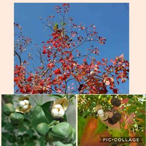 近所にいくつもあるナンキンハゼの木。 葉っぱがまだ緑色のもあれば、赤く紅葉したものも🎶