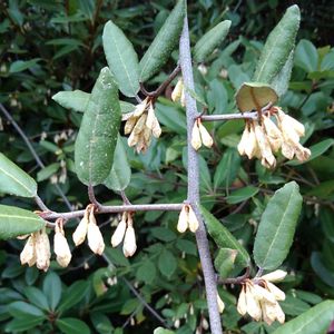 用水路を挟んで向こう側から伸ばした枝に沢山のナワシログミの花💕 今まで薄茶色の花しか見た事が無かったのですが、これは白っぽくて綺麗でした‼️