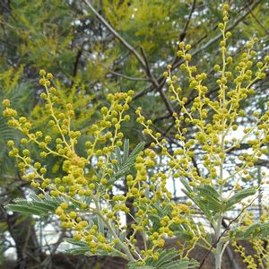 黄色い蕾をいっぱいつけたギンヨウアカシアの木です‼️ 間に用水路があるので、伸ばした枝に手を伸ばして📷 満開になるのが楽しみですね❣️