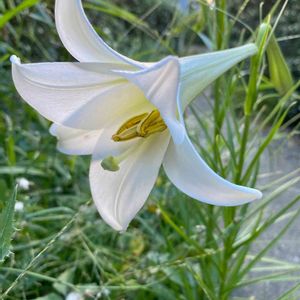 🌿シンテッポウユリ🌿 たぶんこれで見納め。 右側側溝の下が田畑の用水路で、ここから田んぼに水を引いています。 この通路がトンボやチョウ🦋のお休みどころで、毎夕数匹が草の上で翅を休めています。 それを見つけるのが楽しくて🎶 今日は何匹いるかな?