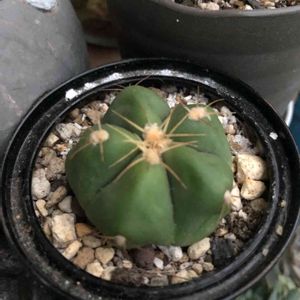 ギムノ三姉妹改めサボ三姉妹 全員ギムノカリキウム属だと思ってましたが、一番奥のトゲの立派な長女はフェロカクタスかも…🙈 どなたか名前わかりますか…? 手前の末っ子麗蛇丸を植え替えたので記念写真📸 左の二女の丸っこい子はたぶん聖王丸 全員ダイソー産です