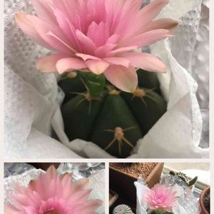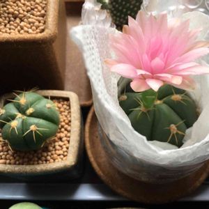 旦那に内緒で こっそりネット通販したのが たった今届きました((´∀`))げへへ 聖王丸第二号です(`・ω・´)キリッ 前の饅頭と違って この子は思ってたより大きい... 饅頭と同じくらいだと思ってたので 手元にちょうど良い鉢がないや(´・ε・`) とりあえず今はこのままに... あと数日は大丈夫だと思うので 早めに鉢探さないと( ̄▽ ̄;) ネット通販の写真を見た時は 蕾だったのですが 着いたら咲いてました(笑) 淡いピンクで可愛いです(*´∇`*) 稜数は6稜でした。 ちなみに饅頭は5稜。