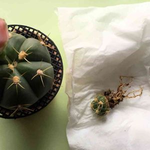 今日セリアに行って 新しい鉢をゲットしてきました! さぁ、植え替えるぞと気合を入れて 包装されてたティッシュを剥がしていくと... 子株が2つ(゚∀゚ ) 少し大きめの子株は もともと小さい鉢に入っていたのか 楕円形になってます。 取りにくかったため 水で土を軽く落としながら バラしたので乾くまで1日放置です。 子株取ったとこも 乾かしたいですからね(´-ω-) この調子で天気の良い日が 数日続いてほしいですね じゃないと 傷んでしまわないか心配(´・ω・`)