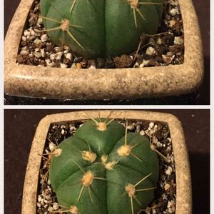こんにちわ! ふとサボたちの方を見てみると 子株になにやら違和感が。 よくよく見てみると 棘が立ってる?(今更 今まで親株にくっついてて 押さえつけられてたから 少しぺターンとなってたのですが 成長してるってことですかね(´∀`*)