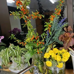 職場のキッチンフラワー🧡花友が、庭で咲いたピラカンサスを、持って来てくれました、トゲに注意⚠️