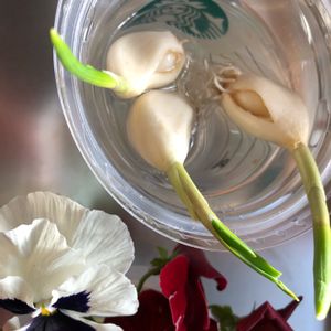 おはようございます😃 4日目のニンニク🌱 花柄摘みしたお花達🌸🌼💐 このくらいでひとつ食べちゃう? (●´ω`●)