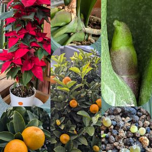 左上は園芸店で観たポインセチアです 真ん中の茎をスッと伸ばして仕立てています これもいいかな❤️ 横2枚 2ヶ月前に花友さんから頂いた 胡蝶蘭 花芽かなぁ ワクワク💓 右下 同じく頂いたサボテン🌵メロカクタスの種蒔き 2ヶ月後の様子 です 可愛い👶💕 左下2枚 斜め前のお宅の大実キンカンです 我が家の3個分はありそうな実😃 昨年より早く熟れてきています 🍊🍊