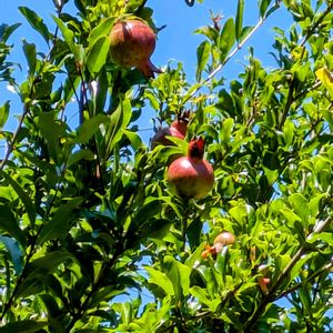 ザクロの実、今年は10個以上成ってます(^_^;) 花はいっぱい咲いたんですけどね🌸 でも去年も花はいっぱい咲いて、3個くらい実は成って収穫はゼロだったので今年はどうかな🤔