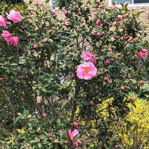 ピンクの椿💕名前はわかりませんが、咲く前はバラのような🌹つぼみになります💓💓💓
