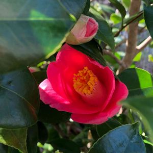 ヤブツバキが咲きました〜💕 移転で引っ越しした時に小さかった苗が花が咲くまでになりました〜椿が3本あちこちに (((o(*゚▽゚*)o)))♡