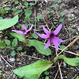 カタクリの花〜💜 二輪だけですが我が家の山野草コーナーに咲いています。😄💕