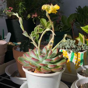 エケベリアの花🌼 でも名前がわかりません😥 どなたか名前わかる方おりましたらお願いします🤲🙇♀️ こちらは花が黄色なんですよね😊