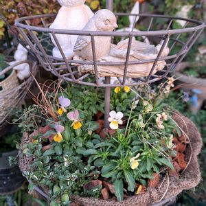 ただぶら下げていただけのカゴに花友さんの真似っこして。 (全然出来が違いますが💦) 小さい子達を植えてみました。 EMSビオラ リトルコニー