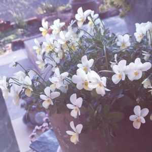 ビオラ♡リトルコニー 写真の撮り方下手ですが😅 満開です❣️ ご近所の方から「可愛いね」と言われ❤️ でも、花柄摘みが大変😂