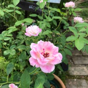 スタンダード仕立てのピンクアイスバーグ💞初開花なり✨ あれ?ピンクアイスバーグってこんなにふんわり系なん??ブラッシングアイスバーグみたい〜 第2ガーデンの真ん中のメイン部分がどうも ぼや〜っとした色ばかりで締まらないから‥と思って引き締め役のつもりで買った子だったのですが‥ この感じで垂れて咲いたら ふわふわ感が増すだけでございますね🤣🤣 まぁ、好きだけれどもさ〜💨