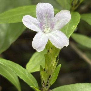 イセハナビ(伊勢花火) キツネマゴ科 分布…近畿地方以西 花期…8~10月 高さ…40㌢程 花径…1.5㌢程 東南アジア原産 観賞用として中国から 入ったのが野生化しています。 名前の由来は 次々と打ち上がる 花火のように花を咲かせる。 とか 花が終わり実が枯れる頃に 種を飛ばす様が 花火のようである。 とか書かれていますが…… では 何で伊勢なの😅 と言う事で由来は 定かではありません💦 薄暗い林の縁に 咲いています🎆
