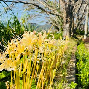 会社へ行く途中見かけた珍しい色の彼岸花😊✨✨ 淡い黄色にサーモンピンクのような色合いの部分もあり優しい雰囲気の彼岸花😚後で調べると白い彼岸花でした👀