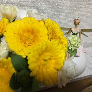 ちょっと前に、安くなってたお花+庭の花のコラボで作ったブーケ💐 隙間が気になったフェアリー姉さん(笑)