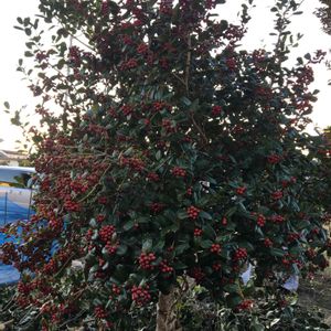 赤色を増してきたクリスマスホーリー🎄 ヒヨドリに目をつけられたら食べられて しまいそう。予防にネットでもかけよう かなぁ🤔