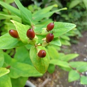ヒペリカムの実が赤くなっていました。 ソロソロ切り花にイケそうですね👍