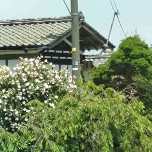 帰り道……川向かいの白い木槿がキレイでした。 この辺は木槿や夾竹桃を植えているお宅が多いです。