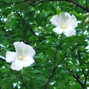 まだ蒸し暑いです。 ソコで現実逃避……✨ 公園の白い槿。 大きな木の陰になっているので、背は高いけどひ弱な印象の木です。 真っ白な花は涼しげですね💕
