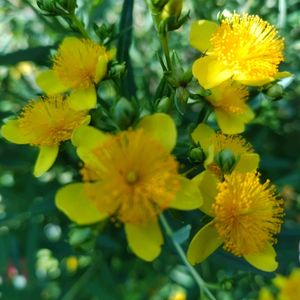 細葉ヒペリカム✨ 2㎝ほどの花がたくさん咲きます。 すぐに種を作り、落ちた種はその年のウチに芽吹きます。 油断してると苗だらけになってしまうので、結構まめに見ては抜いています。 欲しい人はご連絡を💦💦