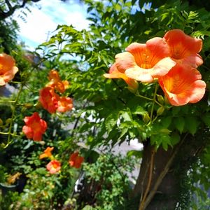 昨日pickしたばかりだけど……今日の花😅 ノウゼンカズラ✨ 朝からの青空に映えますね💦💦