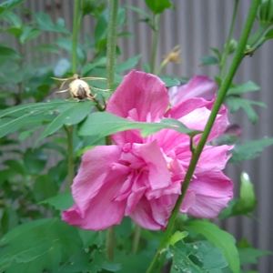ほぼ日陰で槿が咲き始めました。 鉢植えを置いといたのに、鉢から根を地面に下ろしてしまい動かせなくなっています。 今年はツボミがいっぱい‼️