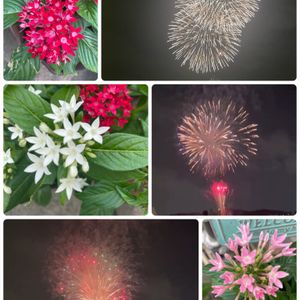 久しぶりに花火を間近で見ました🎆🎇 若い頃は浴衣を着て、ひと夏に 3ヶ所花火を見に行ったことも あったな😊 ペンタスがちょっと花火に 似てる気がします🎇🎆 ペンタスの花言葉 希望が叶う 願い事