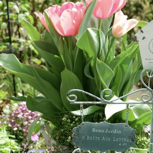 ①チューリップ🌷サーモンファンアイク🩷おしゃれな色🩷 (突然の雨風で過保護に玄関避難中😅💦) 🏷春色チュ!チューリップ♡に参加させてください💞 ②八重のチューリップ🌷も咲き始めました💞 ③オダマキ 名前のアーリーバードのように可愛い三羽🐦