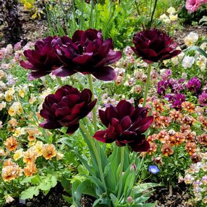 チューリップ & ビオラ 😊✨ チューリップ花束植え🌷🌷🌷 球根の先を中心に向けて植えました✨ぎゅっとまとまって咲くので、特に八重咲き品種植える時には向いてると思います😊 (イメージ図は写真4枚目✨)