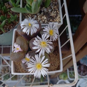 2019/11/12、ふたご同時に咲きました。 オフタルモ、徒長なのか生長なのか。 薄っすら桃色が可愛らしいです。 #風鈴玉 #Ophthalmophyllum #オフタルモ #コノフィツム #コノフィツム オフタルモ