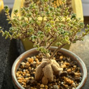 今日は予想最高気温25℃の1日曇り予報☁️ お迎えした時以来、約2年ぶりの植え替え🪴 狙ってた通りな感じで大満足😆 渋くもあり、風格もあり、可愛くもあり、まさにアフリカン盆栽🌳 根が多かったですが、なんとか収まりました(笑) 成長はゆっくりなんで、問題ないでしょう👌