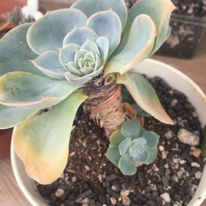 あ〜……😱😱😱💦 やっぱりやっぱり枯れてきちゃった… 極力水やってないので加湿が原因ではないと思うんだけど… どうも花芽切って、それをとった場所から黒くなってる?? 下に子供いるけど…このまま下まで黒くなって行くんかな…😱😱😱 今何かできるかな…どなたかわかる方教えてください😔