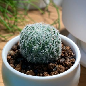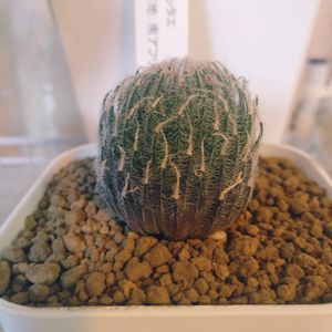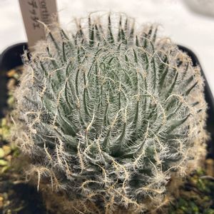 ハオルチア・オデッタエ。 もはやサボテンにしか見えないレース系ハオルチア。 フワフワの毛とまん丸なシルエットが特徴的な種で、似たようなのが多いレース系の中でもコイツはかなりキャラが立っていると思います。 まぁ見た目は可愛いんですけど、ここまでサボテンっぽいとハオルチア好きにとっては好き嫌いの別れるところかもしれませんね。 キラキラ・プリプリ系が好きな人にはウケないかもしれないけど、フワフワ・コロコロ系が好きな人にはウケるかもしれません。 チャームポイントである「丸さ」を維持するにはやや強光気味で管理した方が良いようで、日陰だと葉が広がってしまい単なるフワフワの草って感じになってしまいます。 (まぁそれはそれで綺麗なのですが) この種はほとんど分頭・仔吹きをしないため長期間栽培しても見た目が変化しにくく、いつ見ても同じ姿、同じ大きさで静かに佇んでいますね。 牽引根により生育と同じペースで地中に株を引き込むため茎立ちとかもしないし、とにかく現状維持に長けたハオルチアだと言えると思います。 毛で覆われているため寒い時期でも紅葉してるのかしてないのか分からないし、その上個体差もほとんど無いためコレクション性も低いし… 良く言えば安定感がある、悪く言えばワンパターン、そんな感じのハオルチアだと思います。