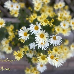 零れ種からのガーデンマム♡ あちこちから発芽しますが年々種類が減ってきています そのままにして置けないので花が終わったら処分🌸残念だけど