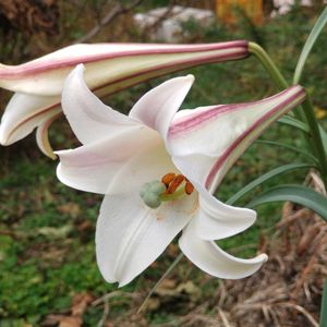 文化祭準備の為、何か飾れるお花を一回り。畑の隅にはタカサゴユリが咲いてました。畑には食用ほうずきが零れ種からまた実をつけて両方共一年に2度も見れるなんて。