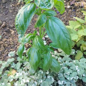 プランターからこぼれ種?で増えた庭の野良バジルです🌿成長写真前半です 夏の終わり?から秋に成長してたので花咲く前に寒くなってしまいました😮