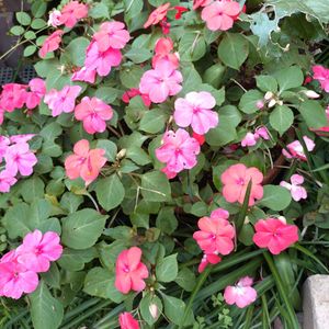 🍀インパチェンス🍀 満開です。💕🤗🎵🎶 こぼれ種から育ってるので 同じ色ばかりです。 ①は小さい苗の時に鉢に寄せ集めた物です。 ②は集めたものとホントのこぼれ種のコラボ💕 🏷ピンクワールドへようこそ に参加させて下さいね。