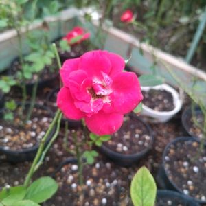 ミニ薔薇4本入りを一年経過したので1本づつに分ける作業をしました。全部で64鉢かな。あちこちの鉢に土を入れ薔薇ものびのび出来るかな。 百日草の花がすごい。