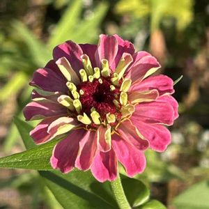 高性のジニア 夏に咲いてこぼれ種から発芽した子 かわいい🩷